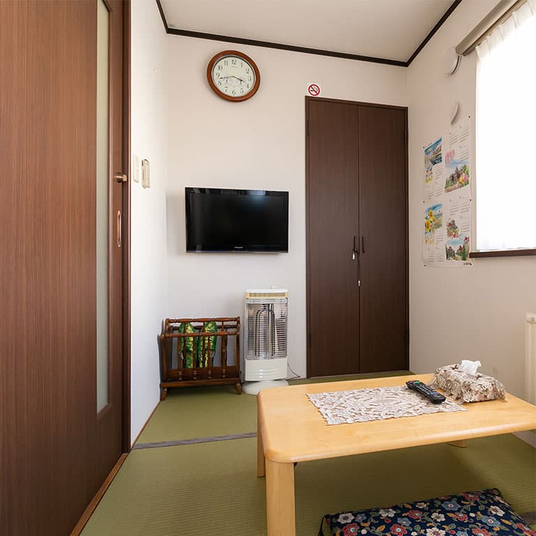 折りたたみベットと車椅子を一台ずつご用意しておりますので、必要な方はお申し付けください。